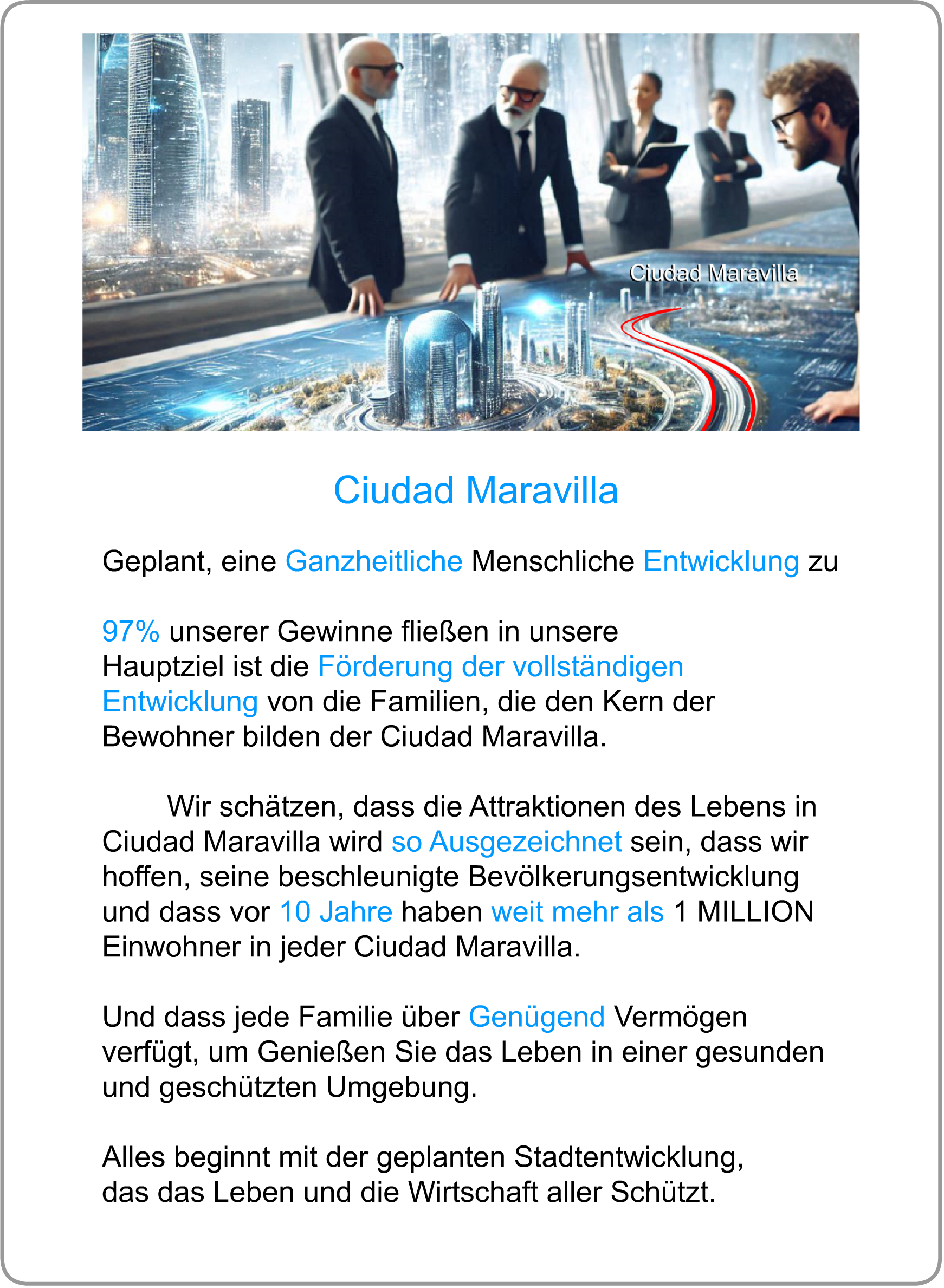 . In Ciudad Maravilla gibt es KEINEN Betrug, nur den Wunsch, ein besseres Leben für alle zu fördern .