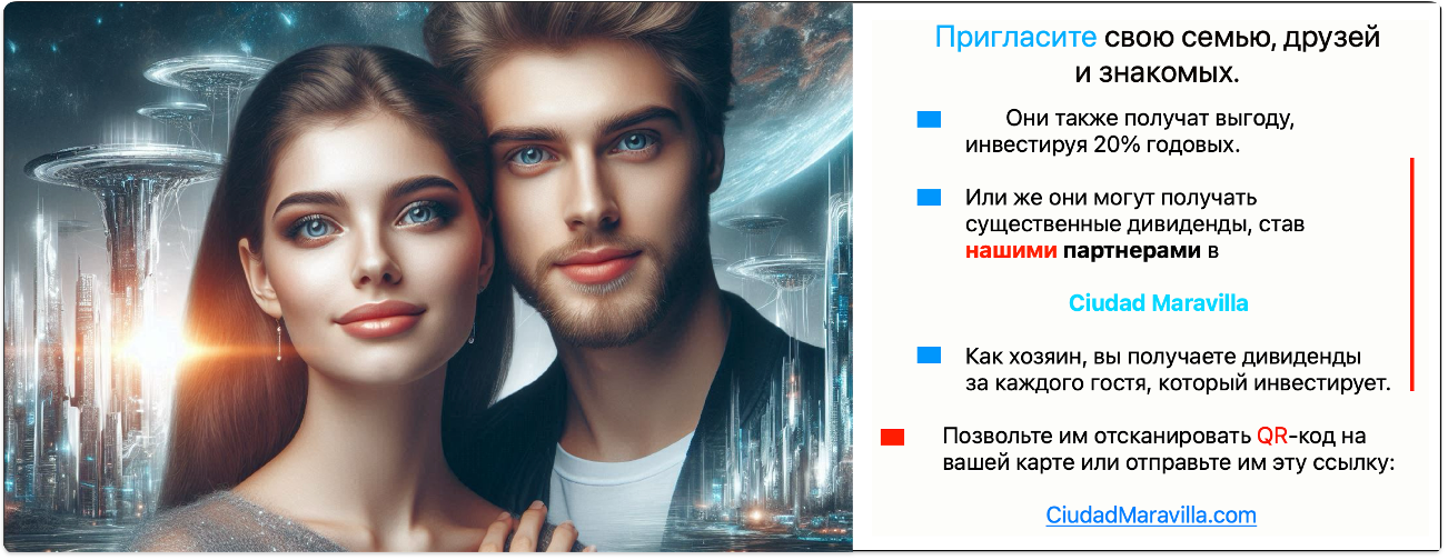 для того, чтобы он быстро заселился на благо миллионов людей. И вскоре он будет заселен за счет создания богатства для многих людей, которые оценят жизнь в этих Ciudad Maravilla, и многие решат инвестировать благодаря отличному стимулу: стабильно высоким дивидендам.