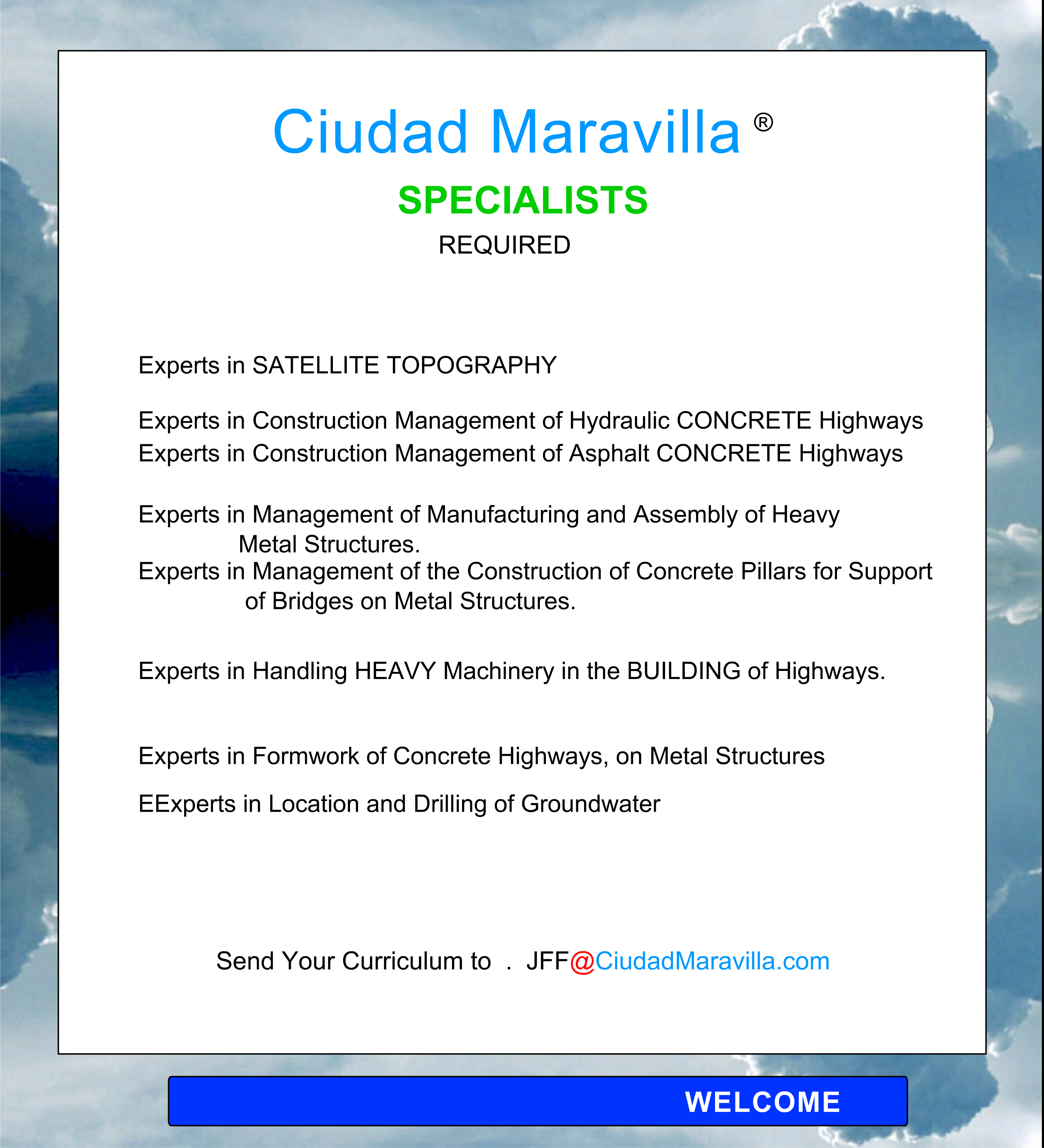 to send us your CV as Contractors