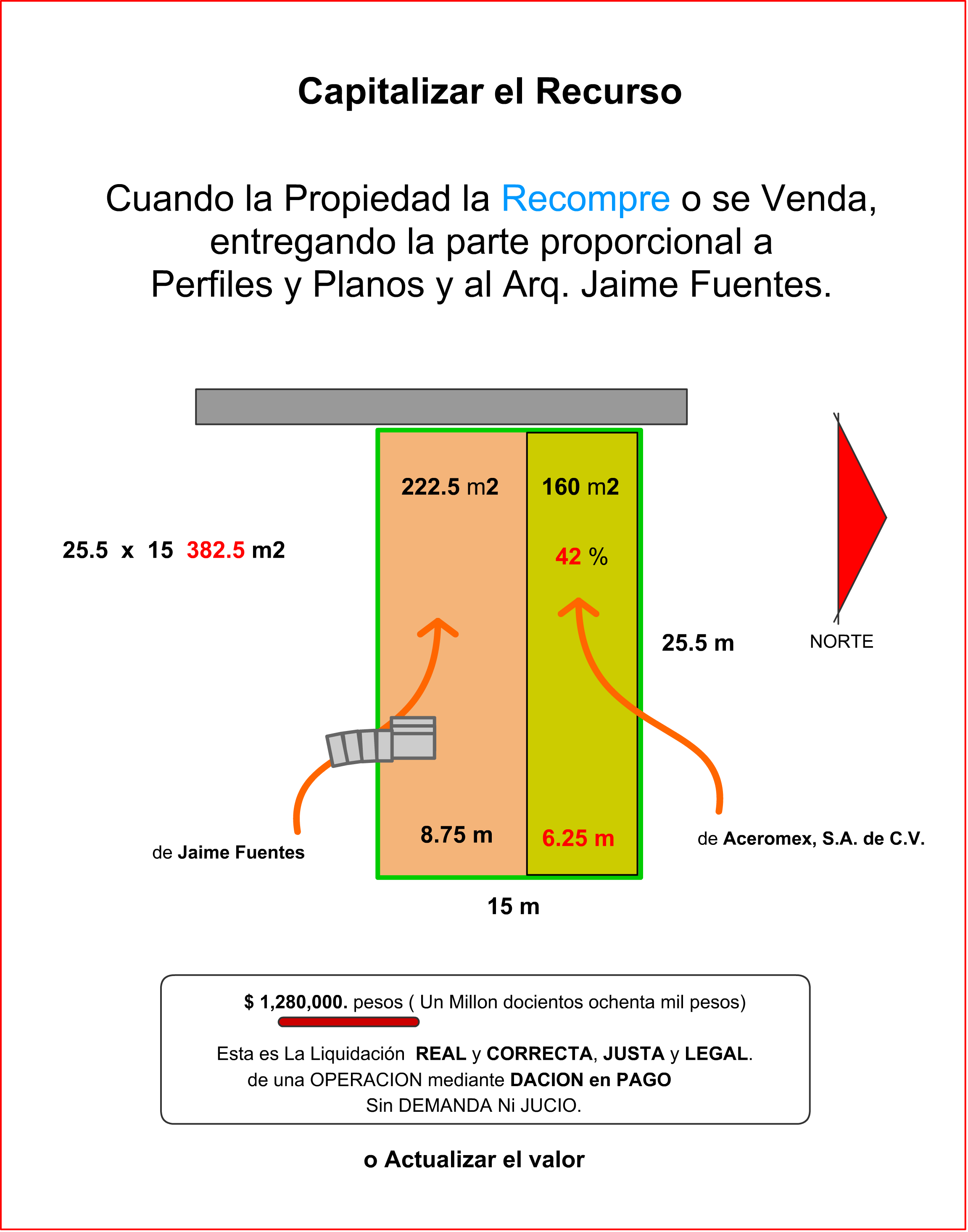 El Valor en en momento de su compra en 1980 fue de $ 450.00- m2 x 382.5 m2