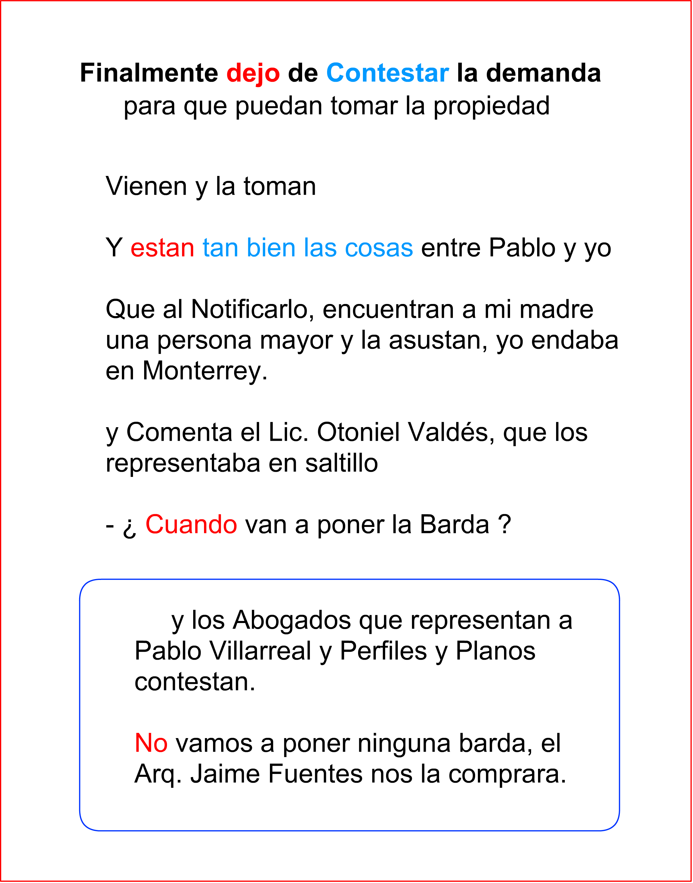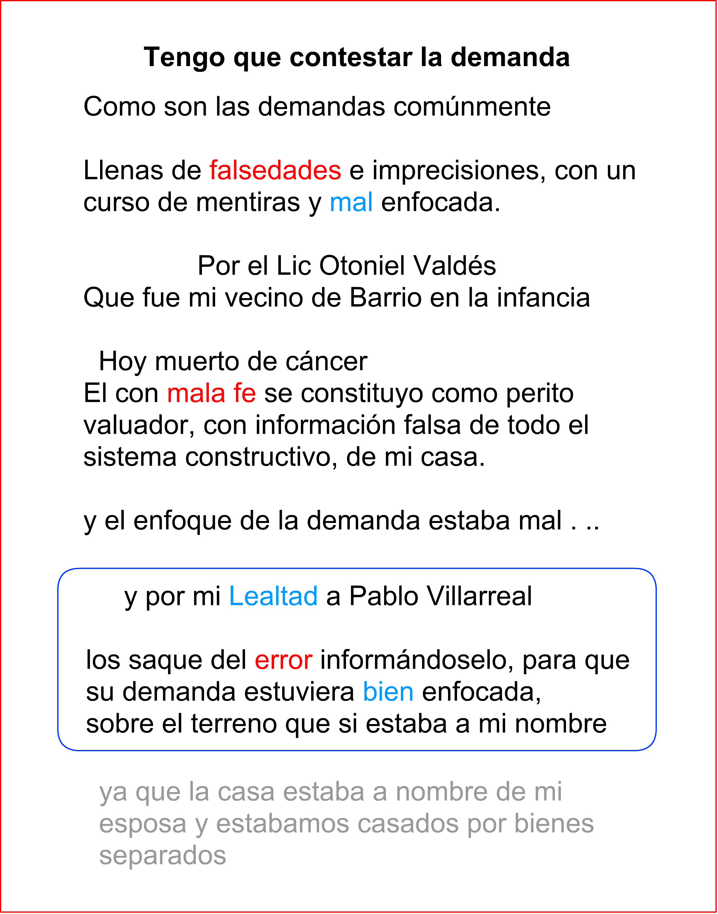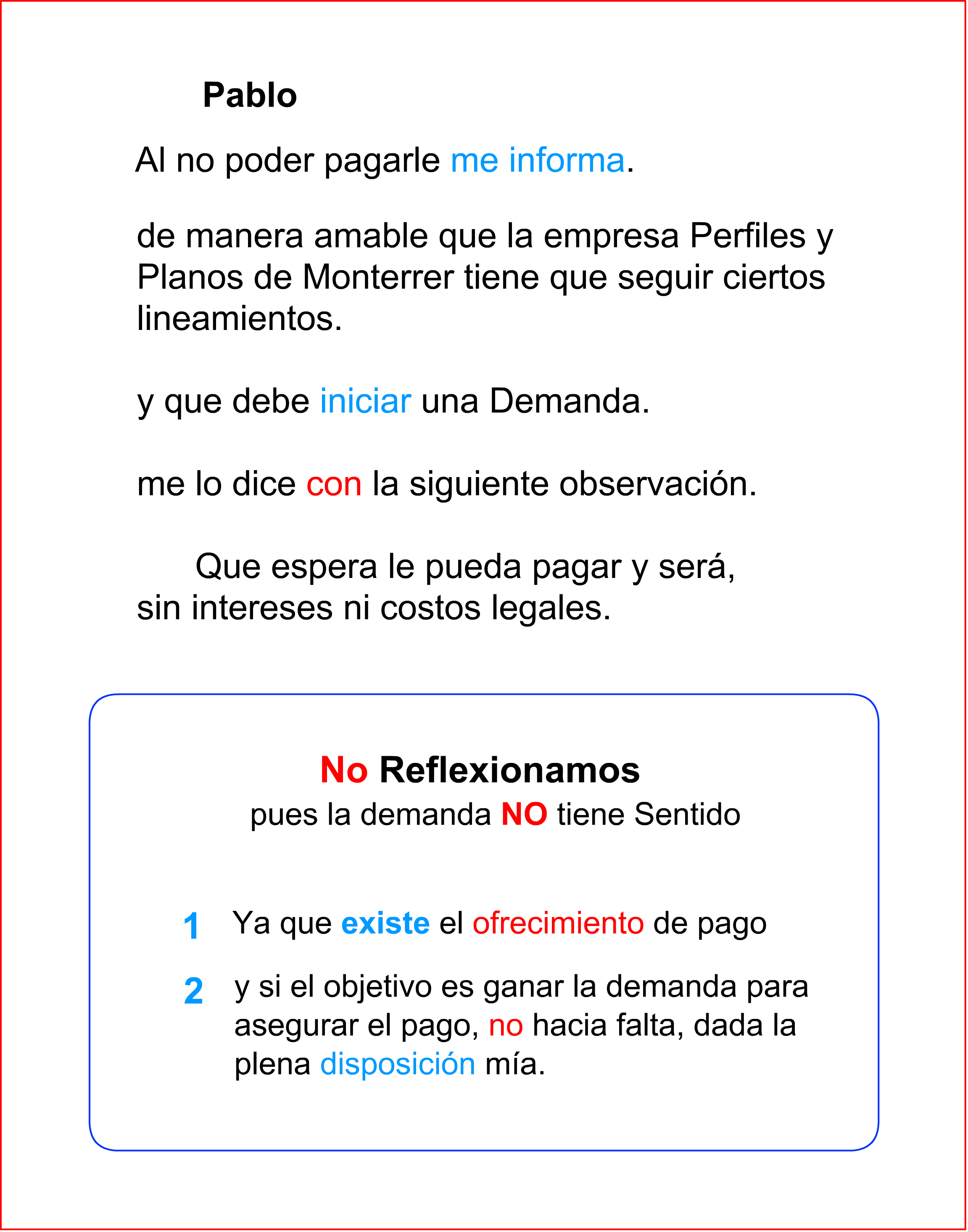para que enfocará bien la demanda en beneficio de Don Pablo Villarreal. . .