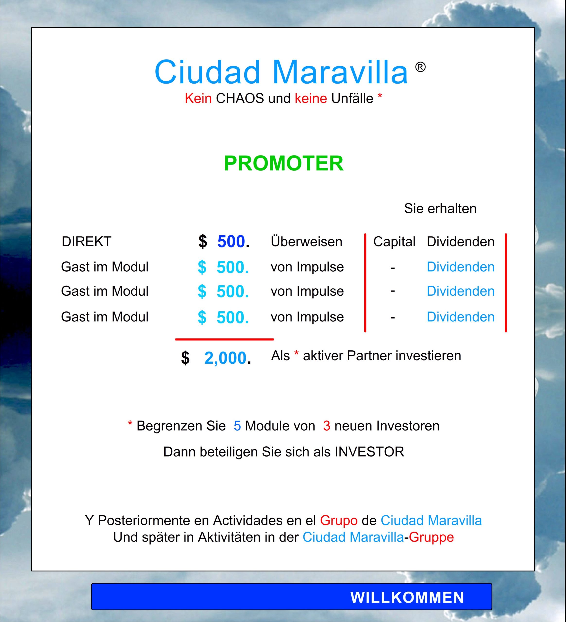 Modulinvestition von 2.000 $. - 20.000 $. 1 Million Pesos – oder Promoter 500 $ + (INFO)