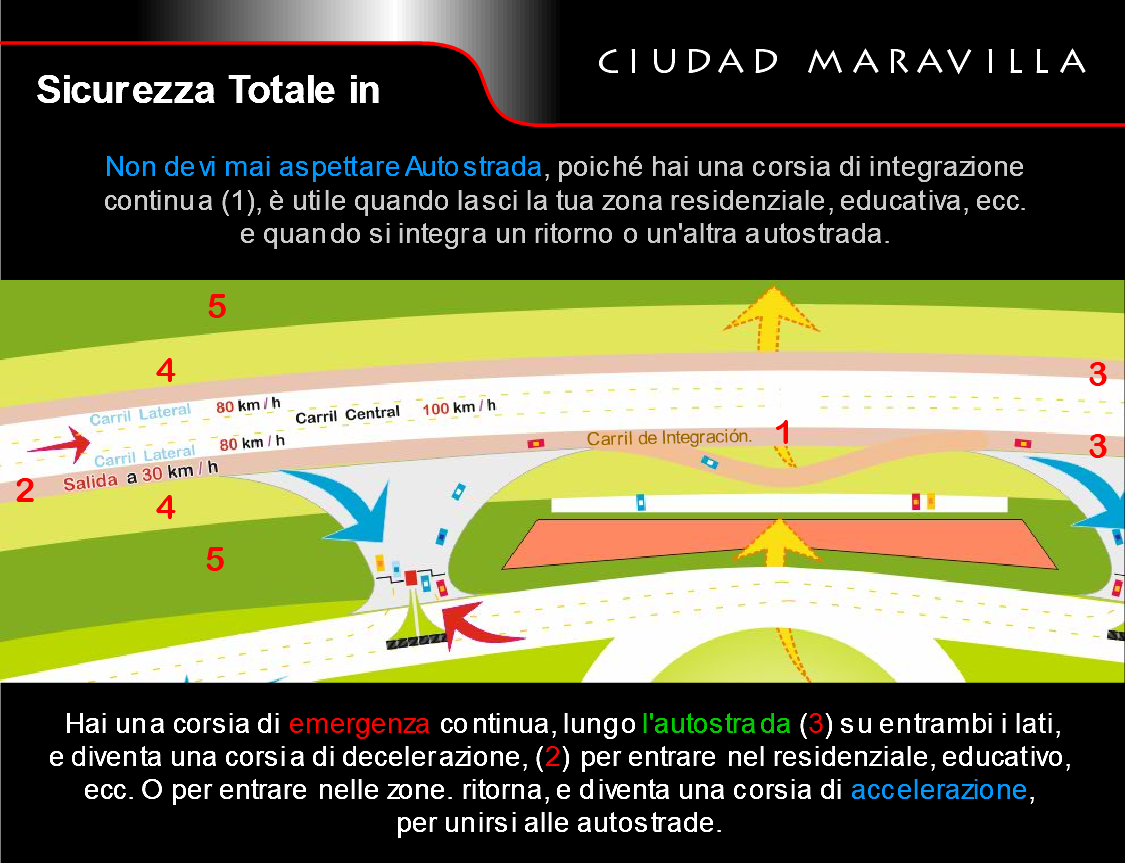 Ciudad Maravilla Le carreggiate sono appositamente dimensionato per aumentare la sicurezza di guida e di serie è fissato per lcada corsia 4 m. di larghezza.