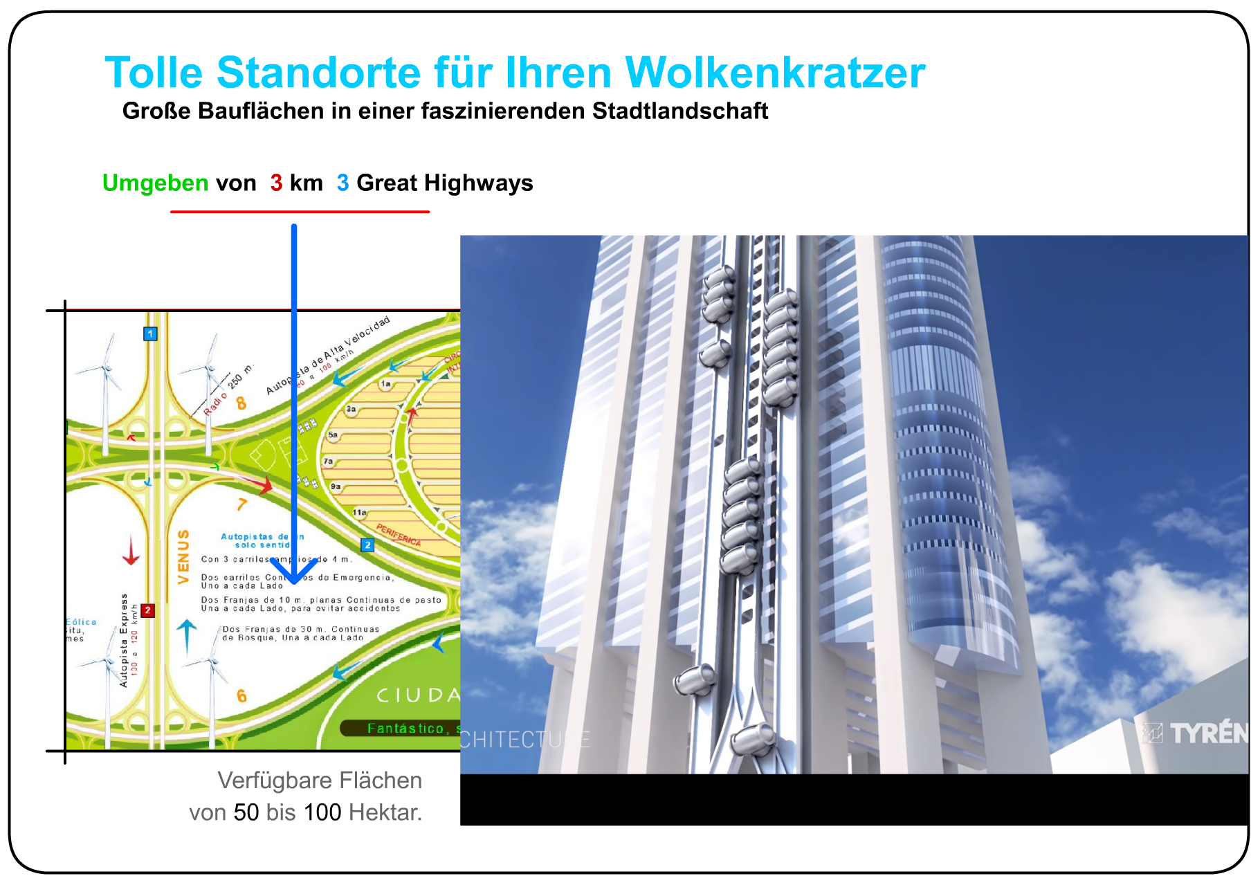 Räume an wichtigen Standorten für Wolkenkratzer, Stadien, Geschäftsviertel usw.