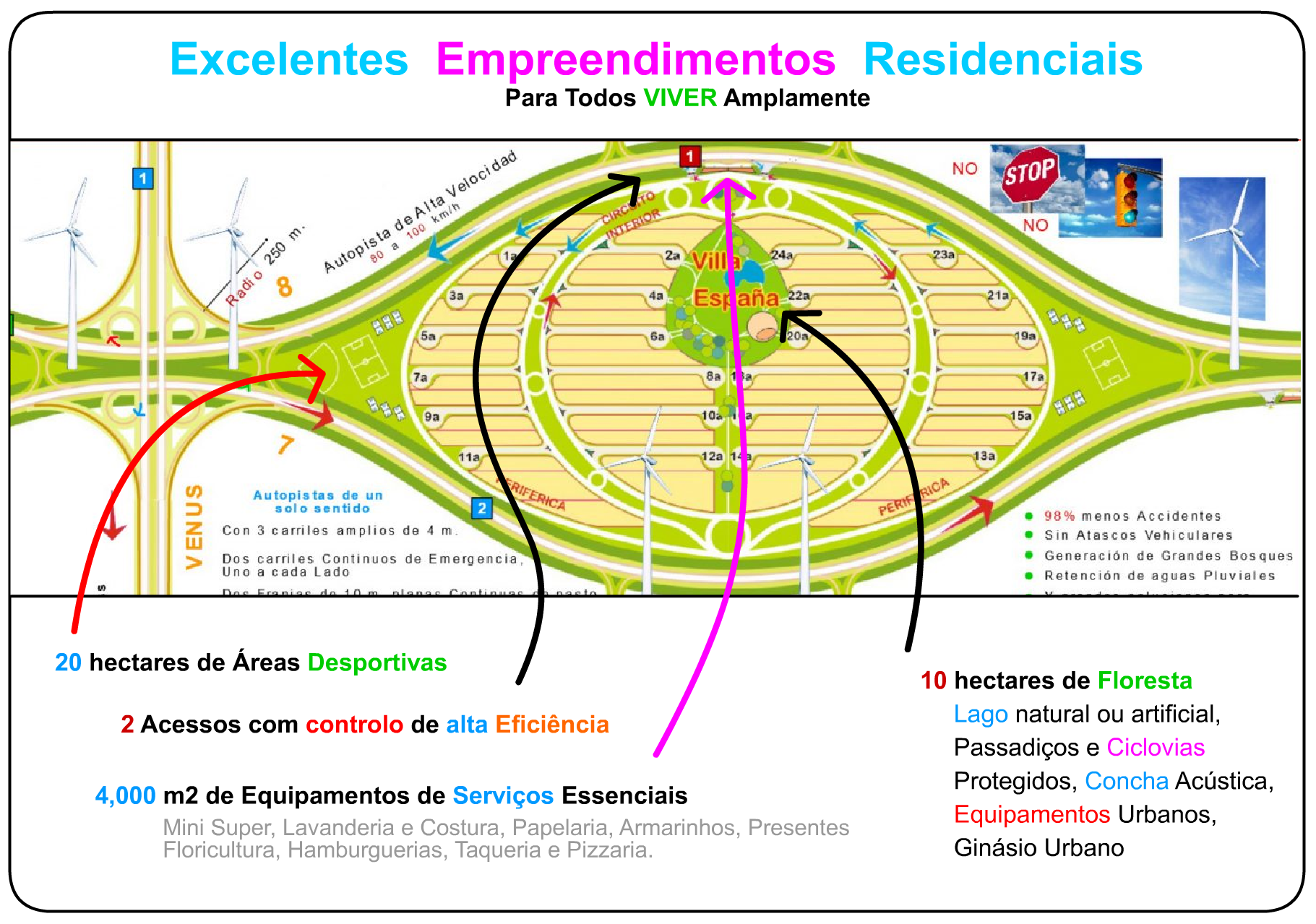 Acesso de alto nível a áreas residenciais, distritos comerciais, distritos esportivos, etc.