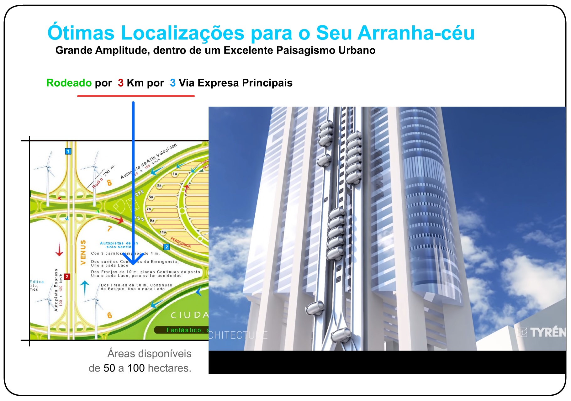 Espaços em locais importantes para arranha-céus, estádios, distritos comerciais, etc.